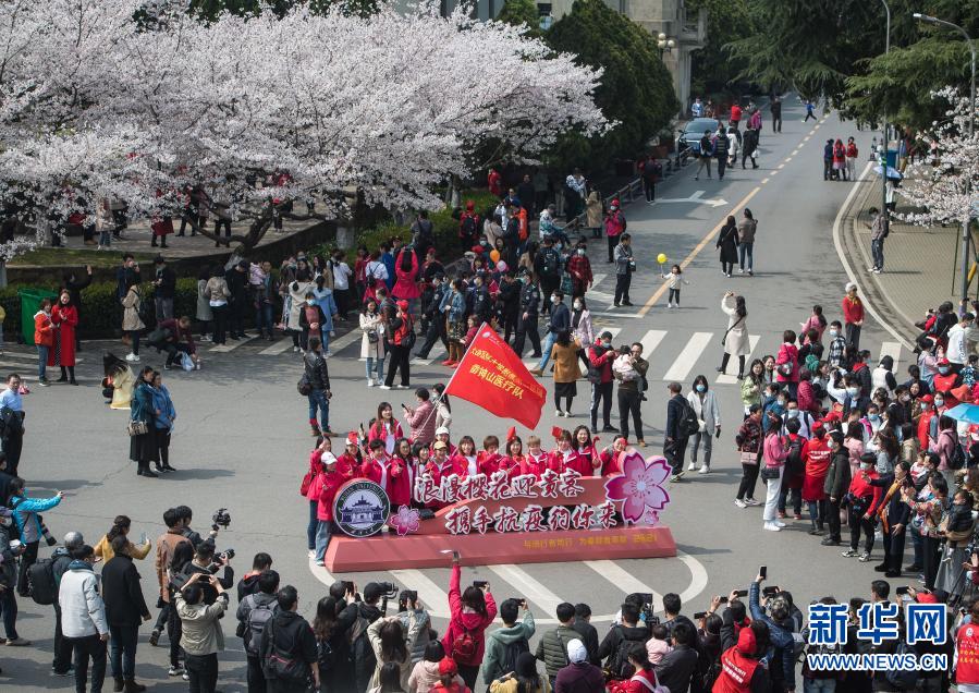 春回大地,樱花树下,英雄归来。13日,武汉大学举办援鄂抗疫医护人员赏樱专场,来自全国各地援鄂抗疫医护人员及家属近1.2万人赴约赏樱。