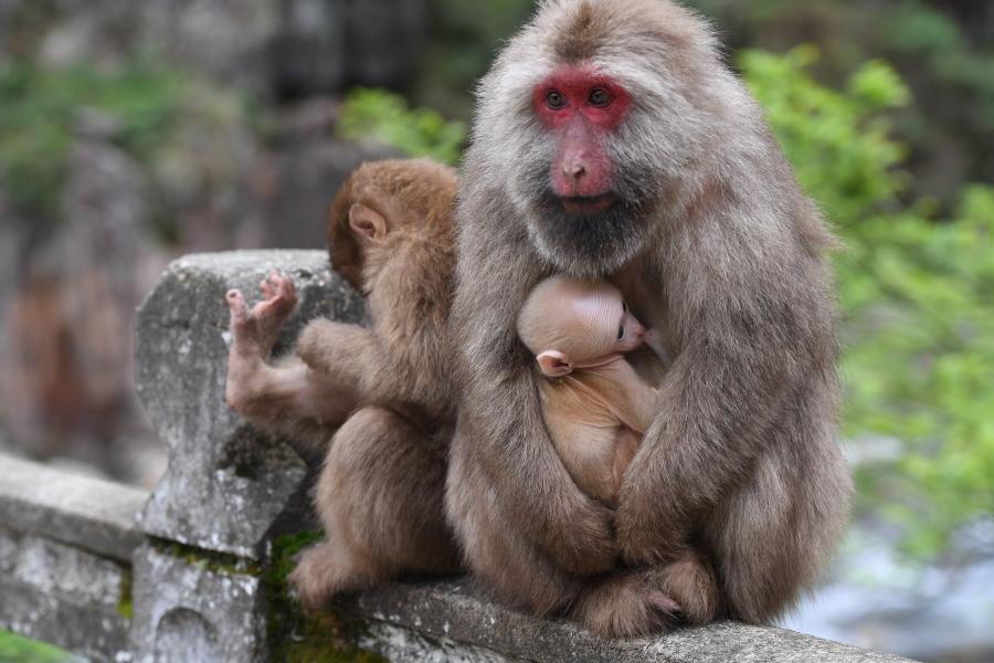 这是2020年4月1日拍摄的武夷山国家公园内的野生猕猴。新华社记者 姜克红 摄