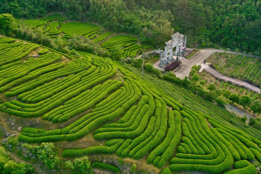 这是2020年4月29日拍摄的福建省武夷山市星村镇的生态茶园(无人机照片)。新华社记者 姜克红 摄