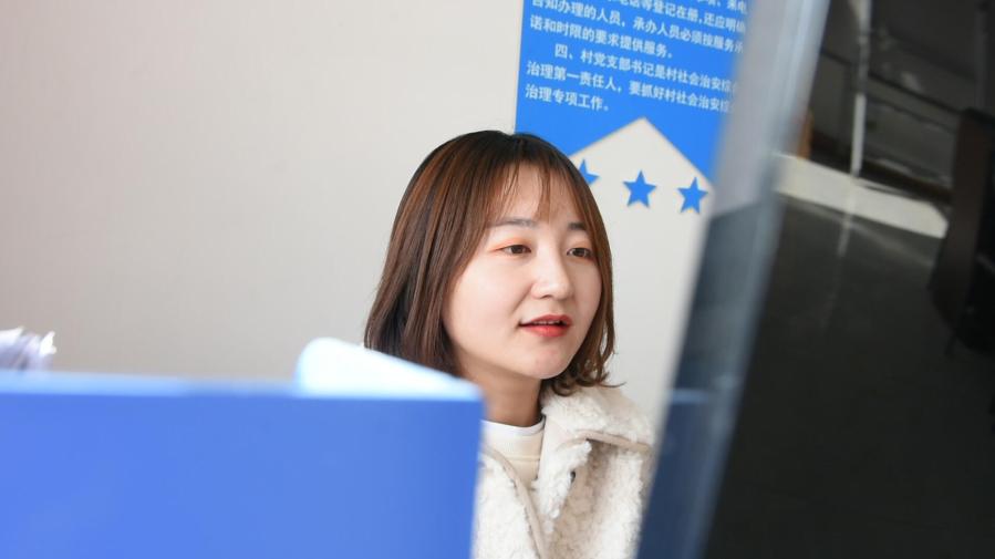王丽娜在村部工作。(新华社记者吕泽摄)
