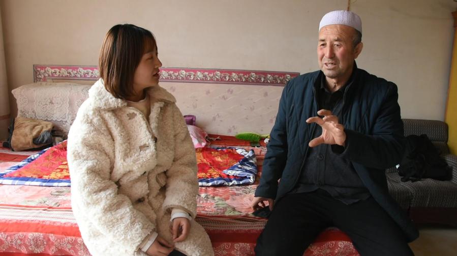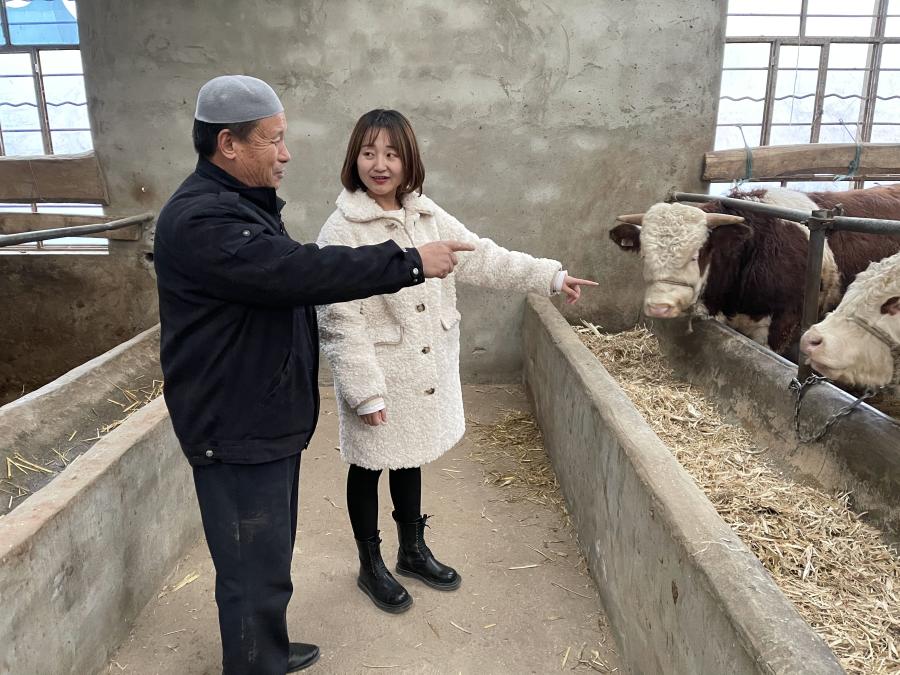 王丽娜(右)在农户家询问养牛情况。(新华社记者马丽娟摄)