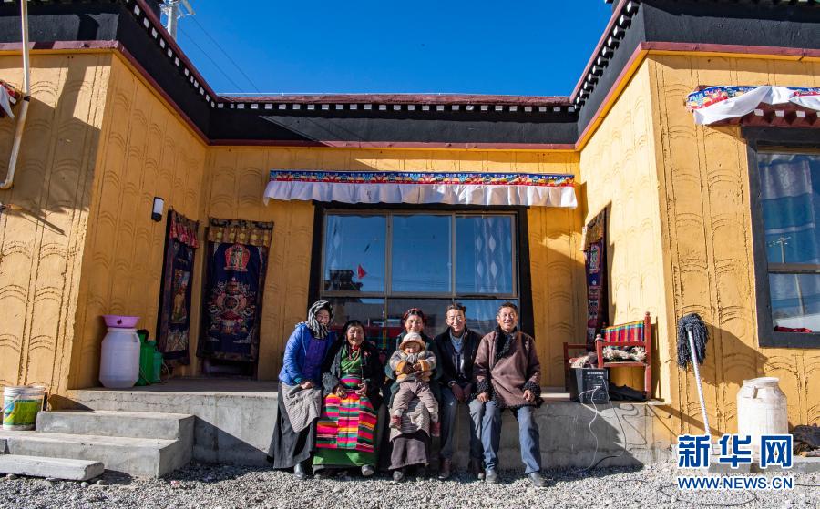 旦增措姆和家人在新家门前(2月25日摄)。新华社记者 孙非 摄
