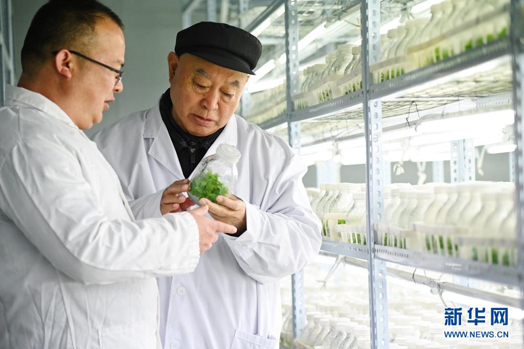 3月11日,吴金印在唐庄镇楸树育苗基地培育车间查看。新华社记者 张浩然 摄