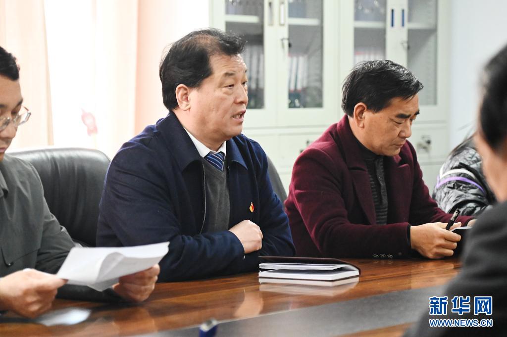 3月12日,赵化录(左二)在冀屯镇社区治理会议上了解工作进展。新华社记者 张浩然 摄