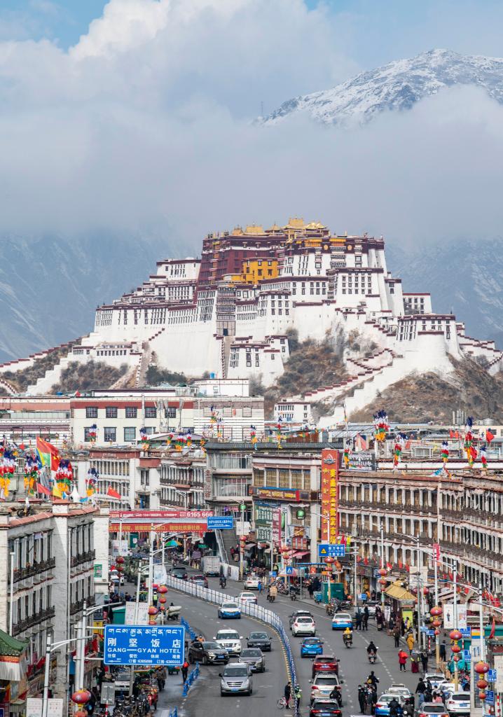 这是在拉萨市北京东路的一处天桥上拍摄的布达拉宫。(新华社记者孙非2020年3月19日摄)