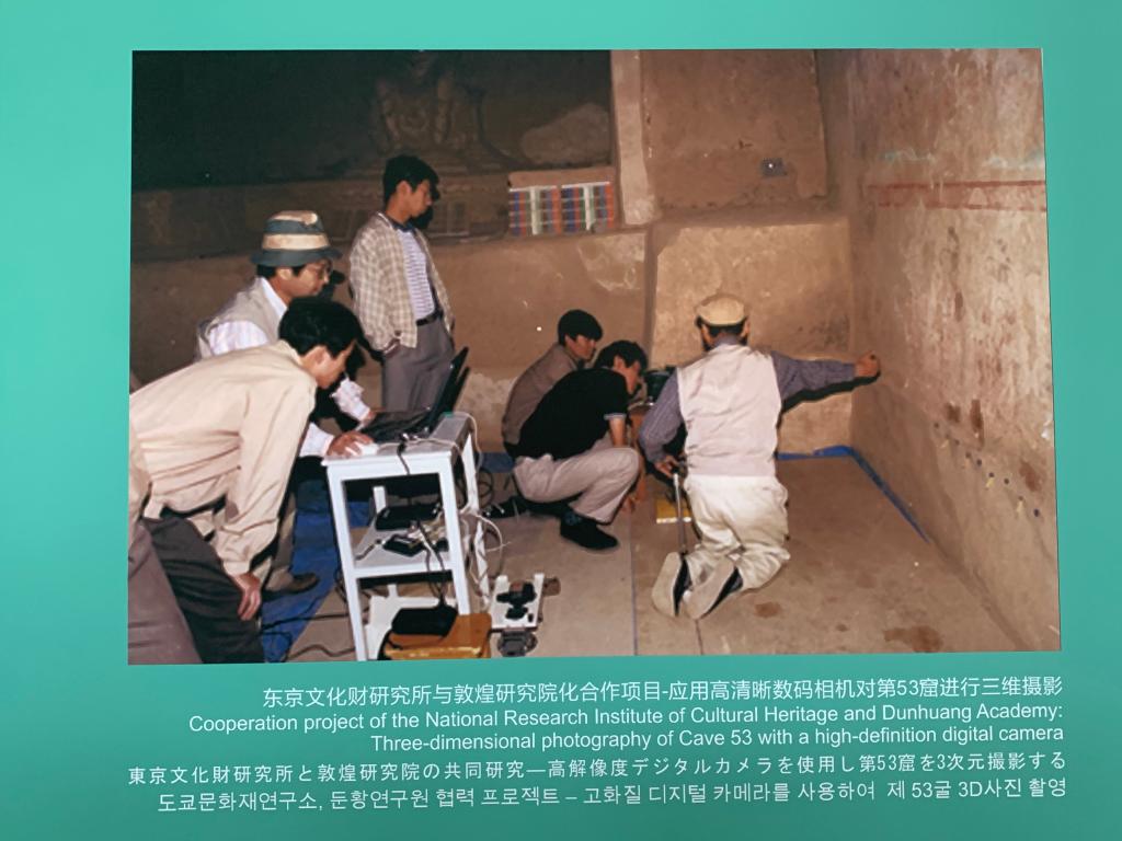 东京文化财研究所与敦煌研究院工作人员应用高清晰数码相机对第53窟进行三维摄影。(敦煌研究院供图)