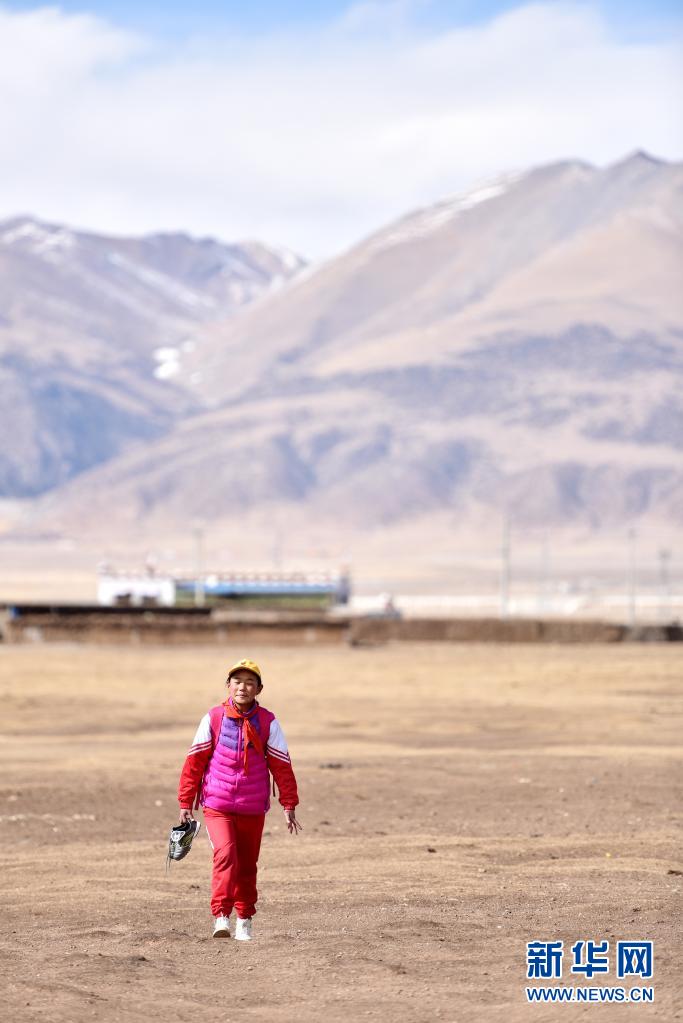 多吉卓玛放学后拎着球鞋回家(3月10日摄)。新华社记者 孙瑞博 摄