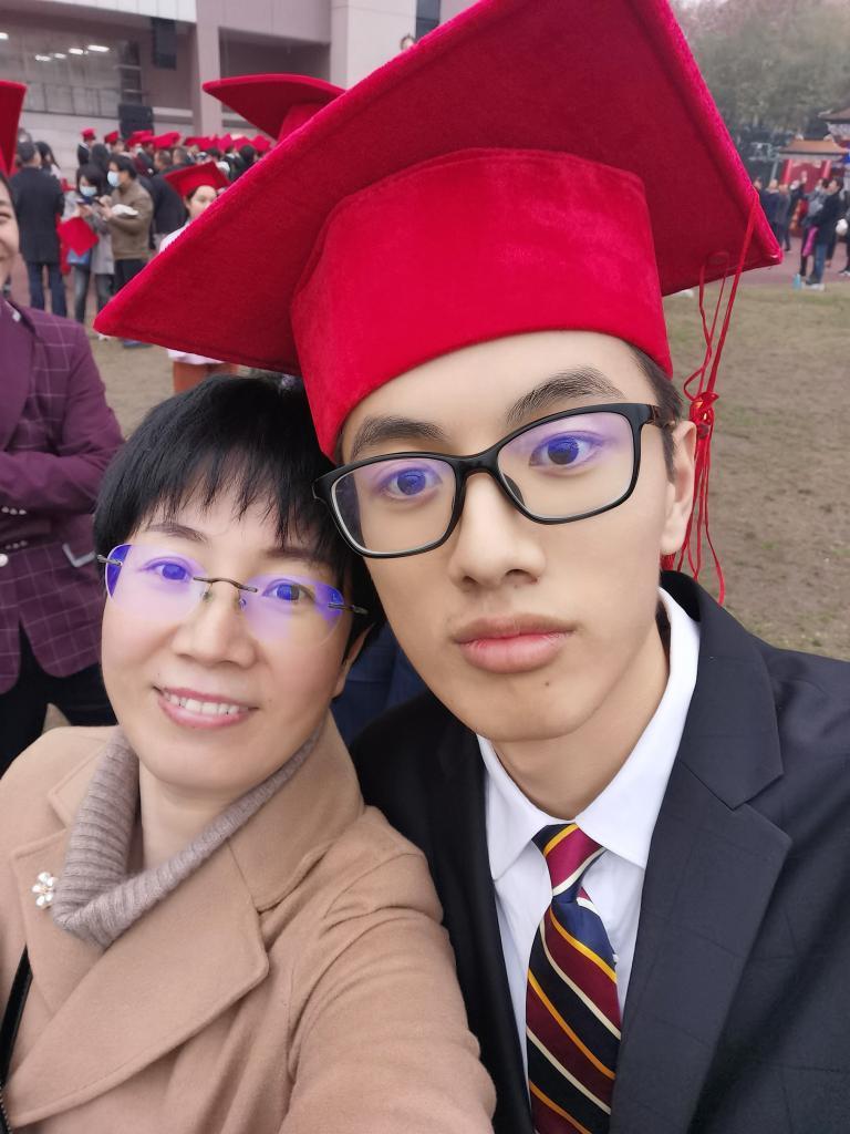 2020年12月8日,高春华在儿子的成人礼上与他合影。(图片由受访者提供)