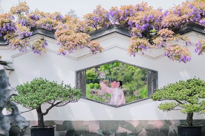 2011年,陈影来到上海工作,经济日渐独立的她开始购买汉服并时常外出穿着。如今,对汉服颇有研究的她经常身着不同制式的汉服去不同的景区拍照。上海南翔古猗园、无锡惠山古镇、无锡蠡园等地都留下过她的“打卡”身影。“把自己美好的样子留在照片里,无论是拍照的时候,还是后续回味,都是很让人开心的一件事。”在陈影看来,穿上汉服置身景区,尤其是园林、寺庙、城墙等古风景区,服装、装扮和场景融为一体,有种穿越时空的感觉。古风的照片后期再配上古诗词,意境就更美了。“如果穿现代服饰去拍照,后期配上古诗词会有种穿帮的感觉,和穿古装的自然感是完全不同的。”陈影说,现在欣赏汉服、喜欢汉服的人越来越多,汉服已不再是小圈层文化。