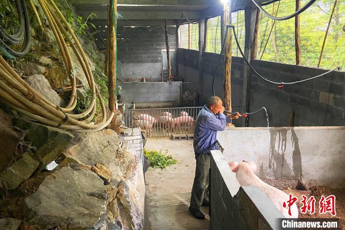 村民柳昌洪返乡创业当猪倌。 周星亮 摄
