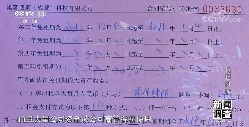 根据成都市高新区公安分局的侦查,“巢客遇家”通过利用“高进低出”“长租短付”的经营模式,吸纳了大量的租客资金,但调取公司资金流水显示,其经营方式不仅无任何盈利点,而且大量公司资金被公司高管挥霍使用。