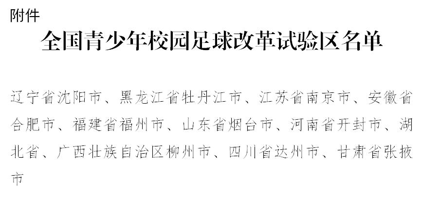 附件:全国青少年校园足球改革试验区名单
