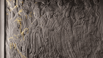 上世纪30年代,这一组两幅国宝惨遭盗凿破坏,流散海外,成为民族之痛,文化之殇。