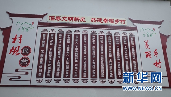 图为鸡窝渡村楼房外墙上张贴的村规民约。新华网聂晨静 摄