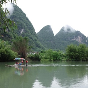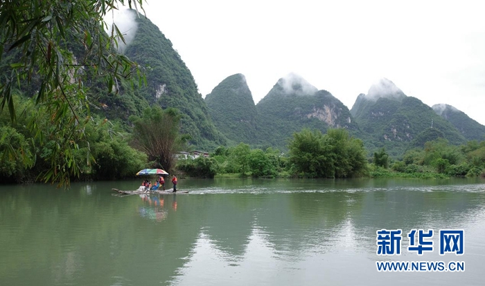 图为遇龙河上竹筏漂流的游客。新华网聂晨静 摄