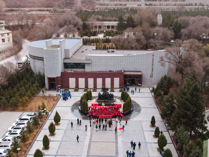 这是3月30日拍摄的中国工农红军西路军纪念馆(无人机照片)。