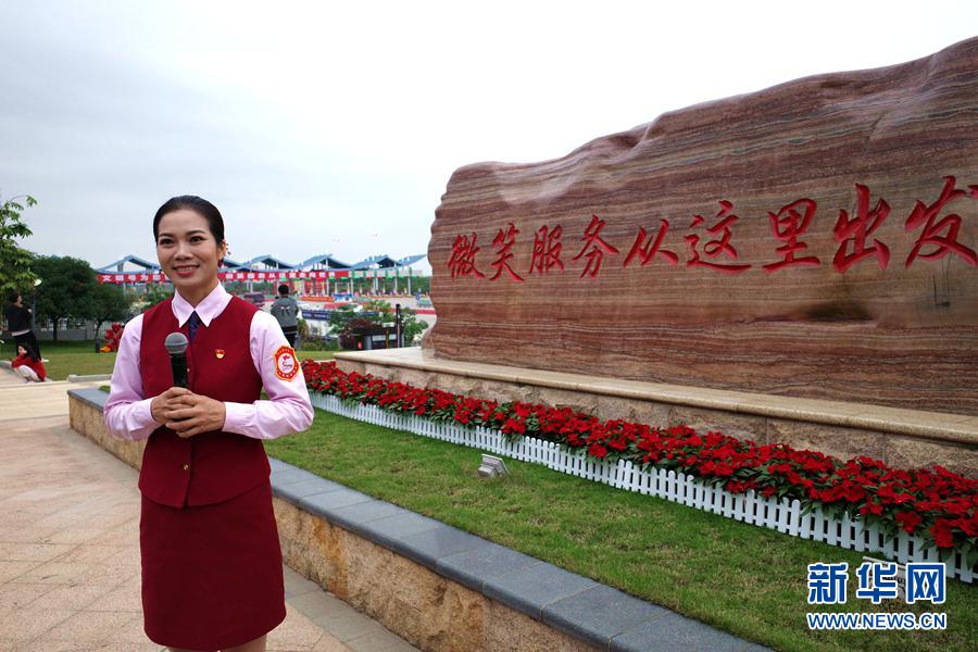 全国劳动模范农凤娟,是南宁东站 “微笑服务”的一位优秀代表。朱红色工作装、盘起的发髻,讲话时面露浅浅的微笑,农凤娟自有一股礼貌温暖的职业气质。2007年,她成为南宁高速公路的一名收费员。那时,南宁高速公路管理处制定标准,首次把“8颗牙”式微笑引入收费窗口,“微笑服务”有了量化、规范化的标准。