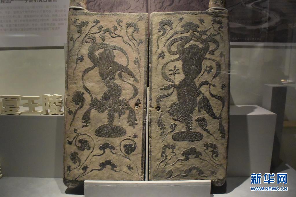 这是在郑州博物馆新馆“黄河珍宝——沿黄九省(区)文物精品展”中展出的“胡旋舞石刻墓门”(4月30日摄)。新华社记者李文哲摄