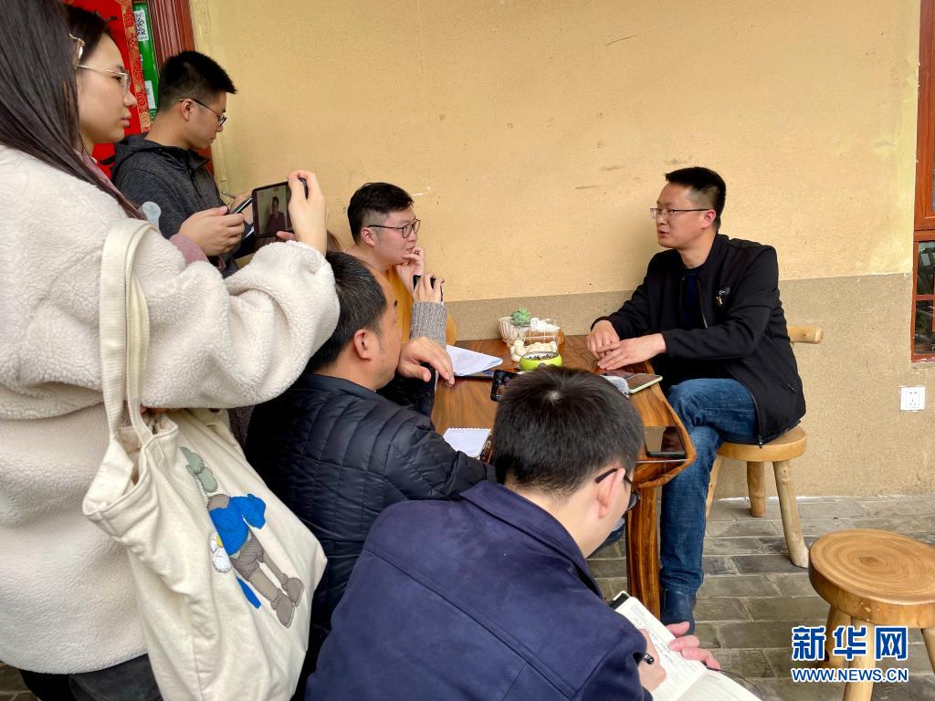 4月15日,韶山特色民宿店主(右一)在介绍经营情况(手机拍摄)。新华社记者 苏晓洲 摄