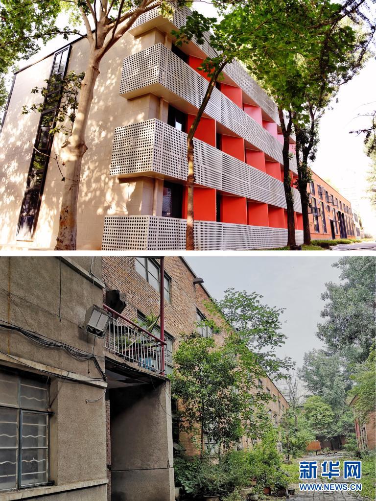 这是一张拼版照片:改造后(上图)和改造前(下图)的河南郑州芝麻街1958双创园一角(资料照片)。新华社发