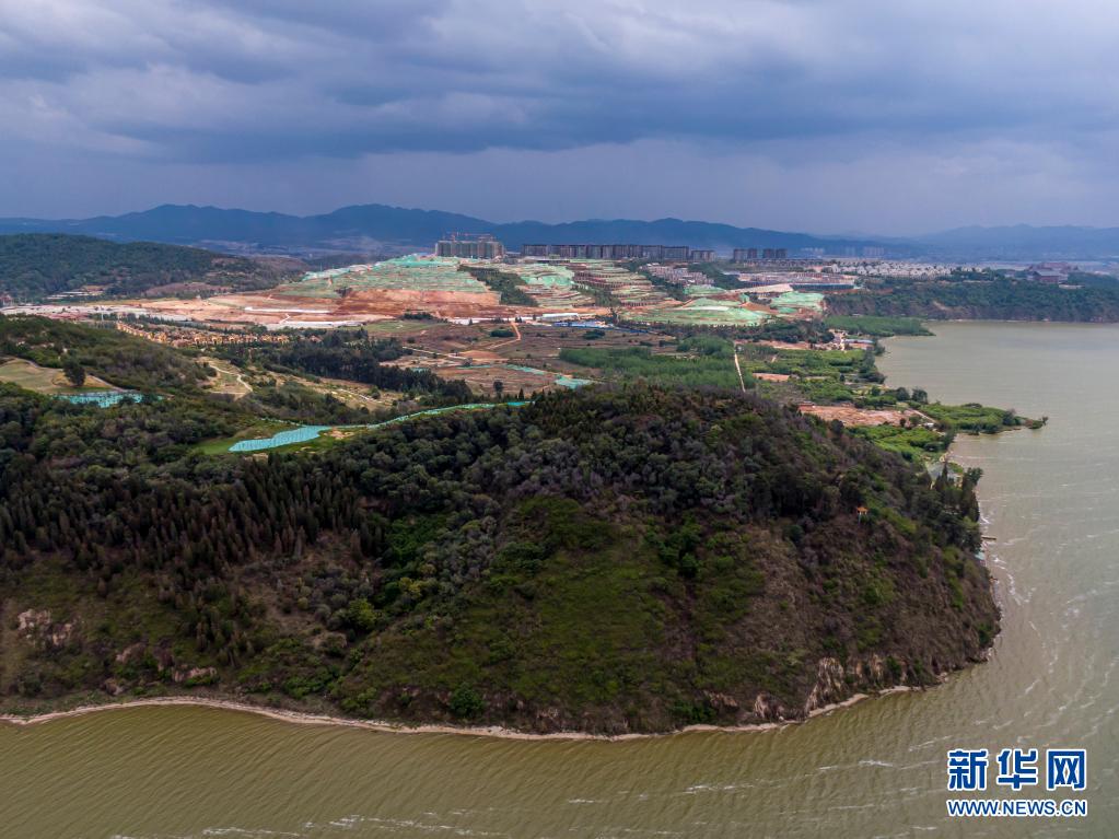 中央生态环境保护督察组指出问题的滇池一、二级保护区范围内的部分工程项目(5月7日摄,无人机照片)。新华社记者 孙敏 摄