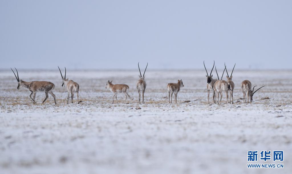 2021年4月20日,藏羚羊在三江源可可西里地区活动。新华社记者 吴刚 摄