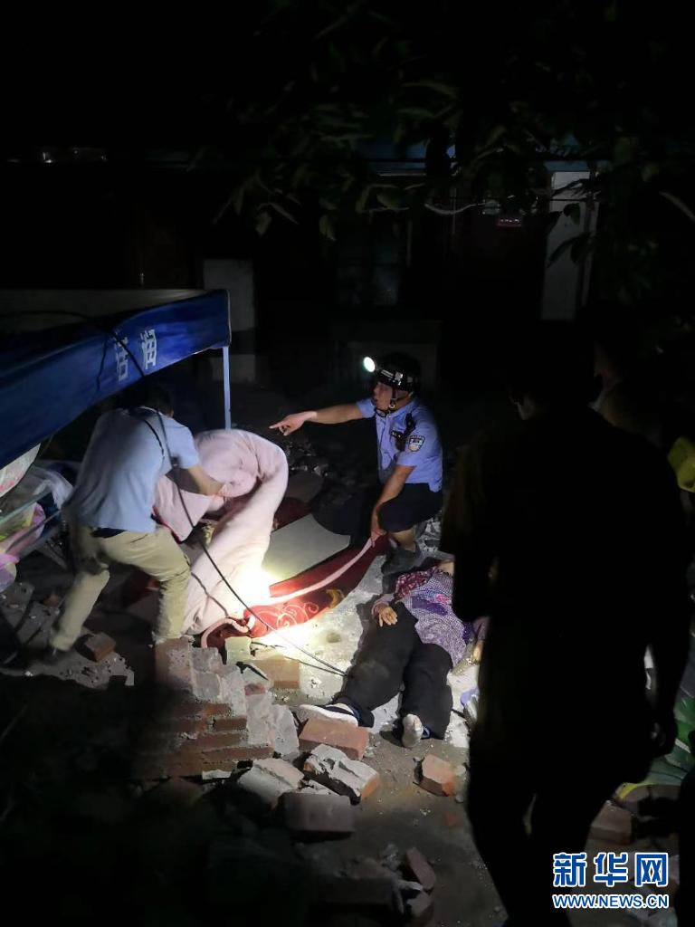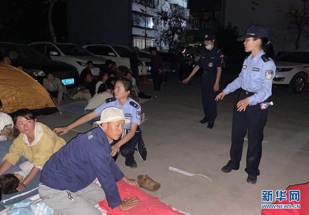 5月21日,云南大理州警方在地震灾区开展救援。新华社发
