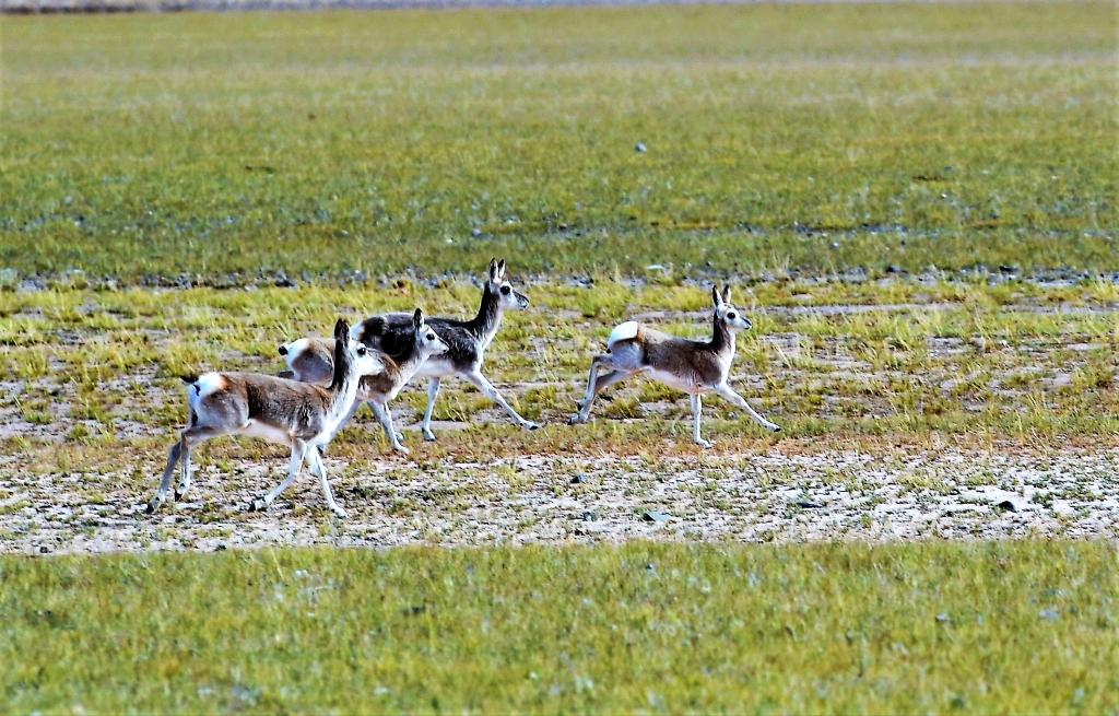 羌塘草原上的普氏原羚(别名:黄羊)。(新华社记者 张汝锋 摄)