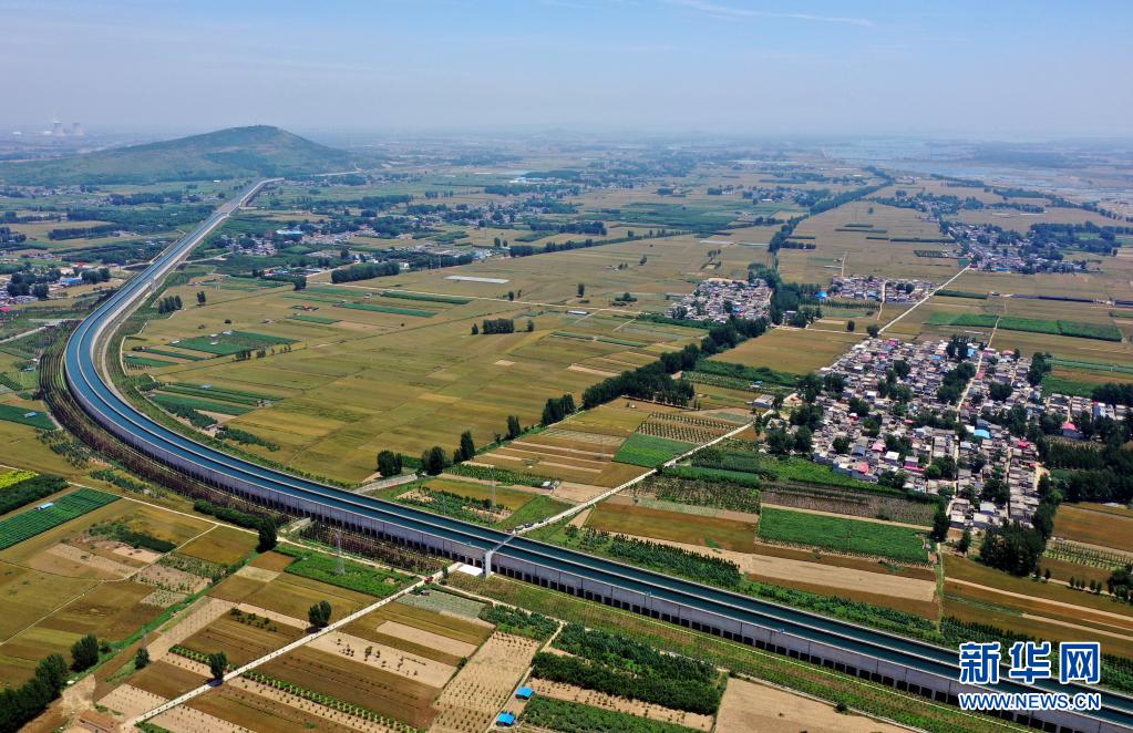 从陶岔渠首一路向北,一条“巨龙”穿越金黄的麦田,横跨沙河绵延9公里,像一座超级空中立交桥,护送一渠清水永续北送。这就是位于河南省平顶山市鲁山县的南水北调中线关键性工程——沙河渡槽。