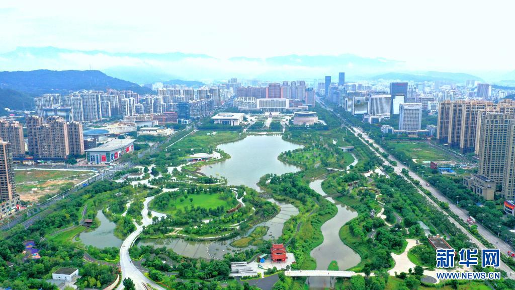 龙岩市主城区龙津湖公园一景(5月14日摄,无人机照片)。新华社发