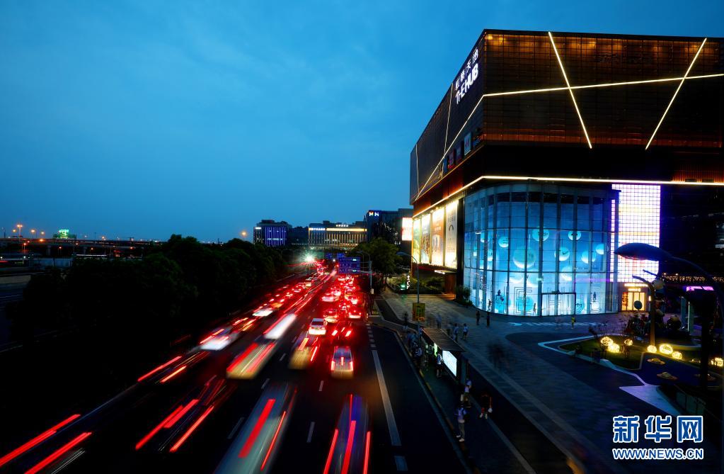 这是从连接虹桥商务区和虹桥交通枢纽的人行天桥上俯瞰虹桥商务区(2020年9月10日摄)。新华社记者 方喆 摄