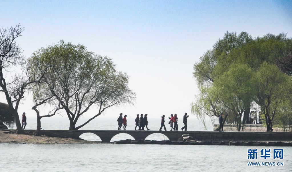 游客在太湖鼋头渚景区游玩(3月13日摄)。新华社记者 杨磊 摄
