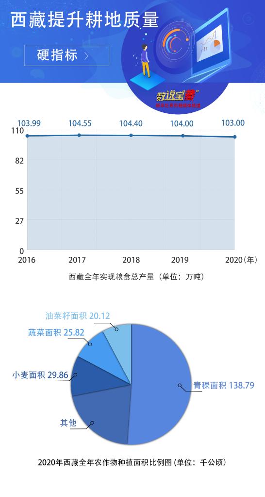 据了解,“十三五”以来,西藏共建成227.26万亩高标准农田,每亩单产粮食由2015年的374.94公斤,提高到2020年的387.33公斤,自治区粮食产量连续6年保持在100万吨以上,主粮青稞供应基本实现自给自足。