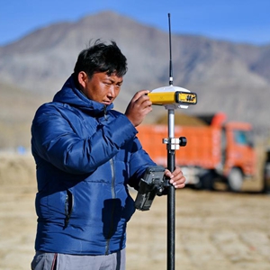 日喀则市桑珠孜区那塘村,测绘人员在高标准农田项目施工现场进行测量(2020年3月1日) 新华社记者张汝锋 摄
