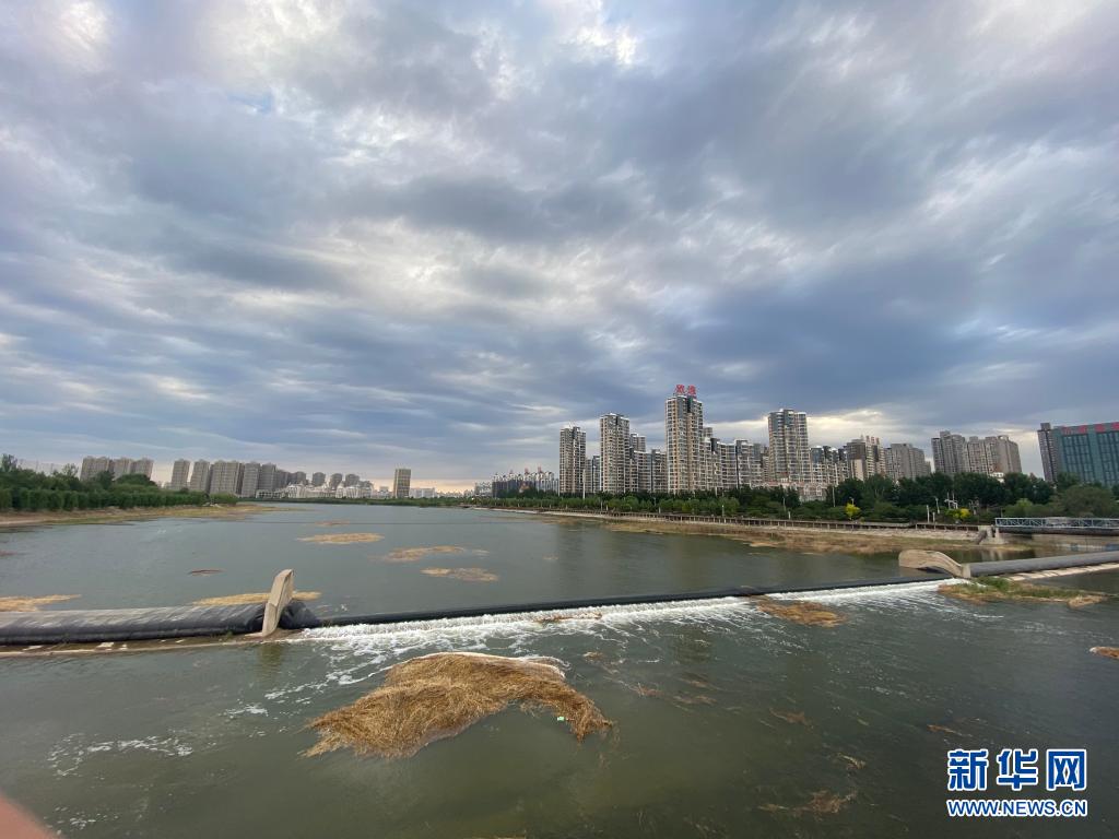 5月29日,潮白河上游来水流经白庙橡胶坝。新华社发