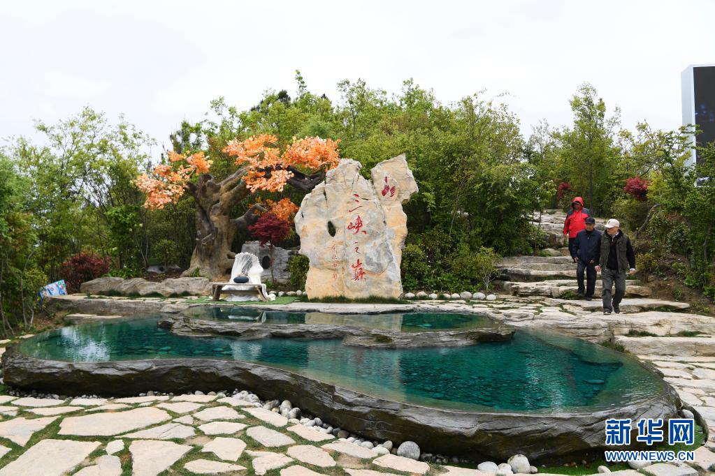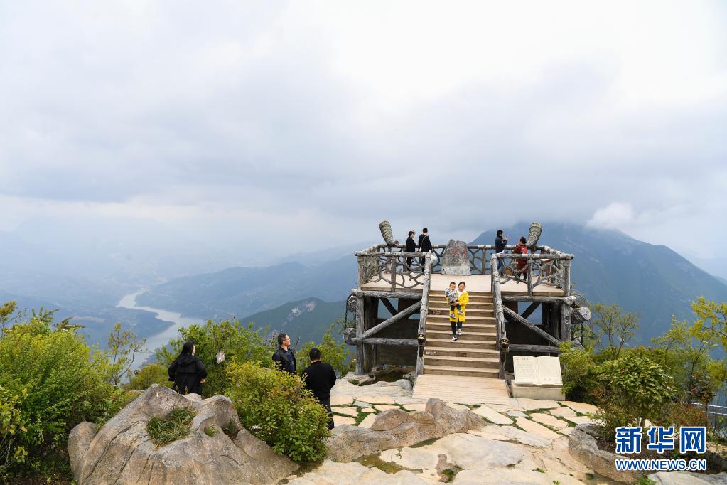 4月23日,游客在位于奉节县的三峡之巅风景区游览。新华社记者 王全超 摄