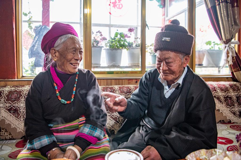 昂旺尼玛和妻子在家中聊天(2021年2月18日摄)