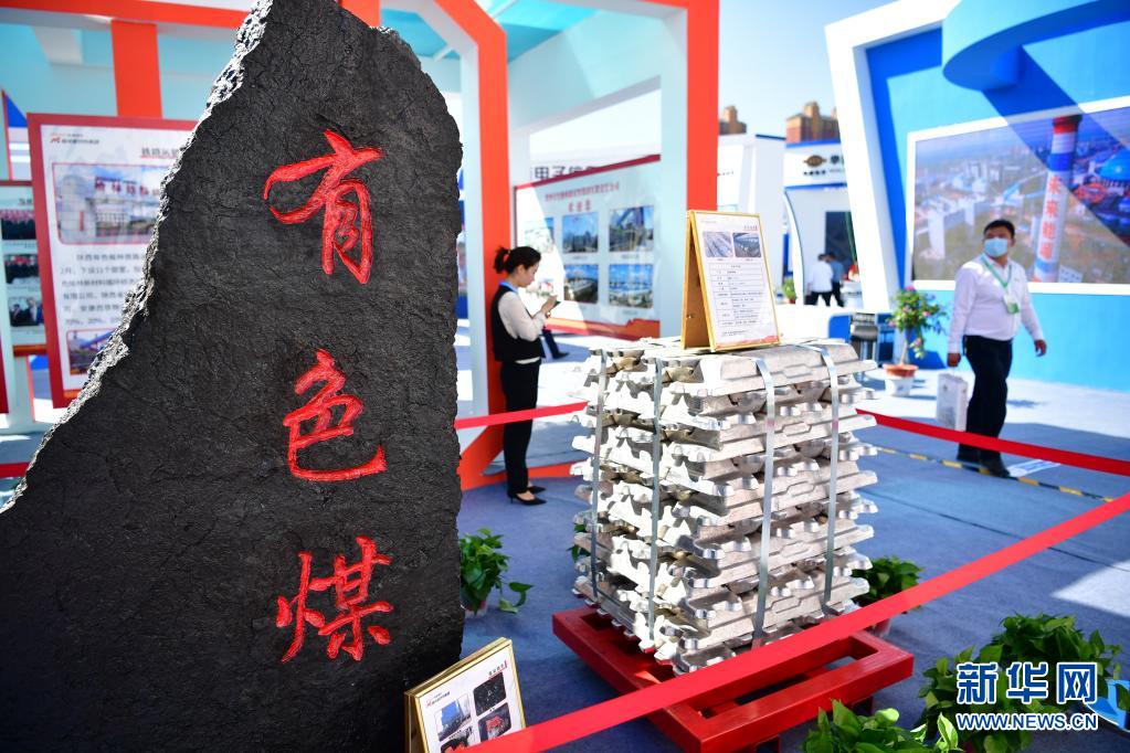 陕西有色金属控股集团有限责任公司在第十五届榆林国际煤炭暨高端能源化工产业博览会展位展出的产品(2020年9月8日摄)。新华社记者 邵瑞 摄