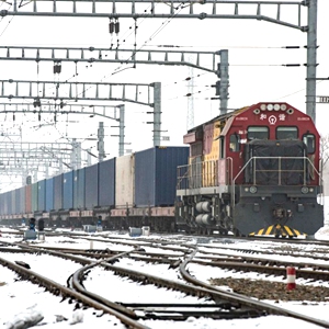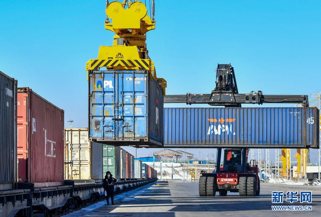 2月7日,一列中欧班列通过新疆阿拉山口口岸出境。新华社记者 马锴 摄