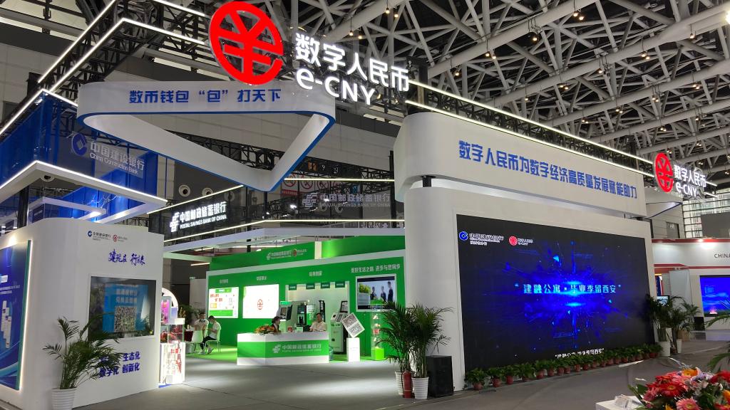图为2021西部数字经济博览会暨2021西部数字经济高质量发展论坛数字人民币展位。(中国人民银行西安分行供图)