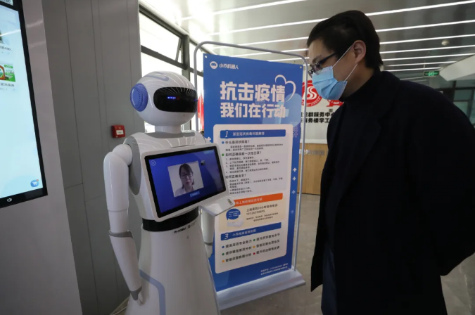 在北京海淀区尚东数字谷,“上地智能机器人”可为企业员工、社区居民提供健康服务。资料图片