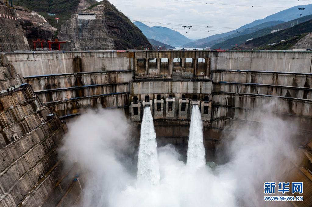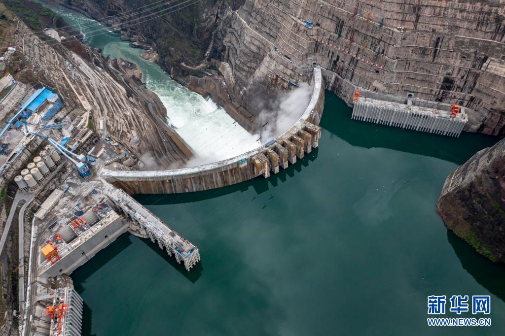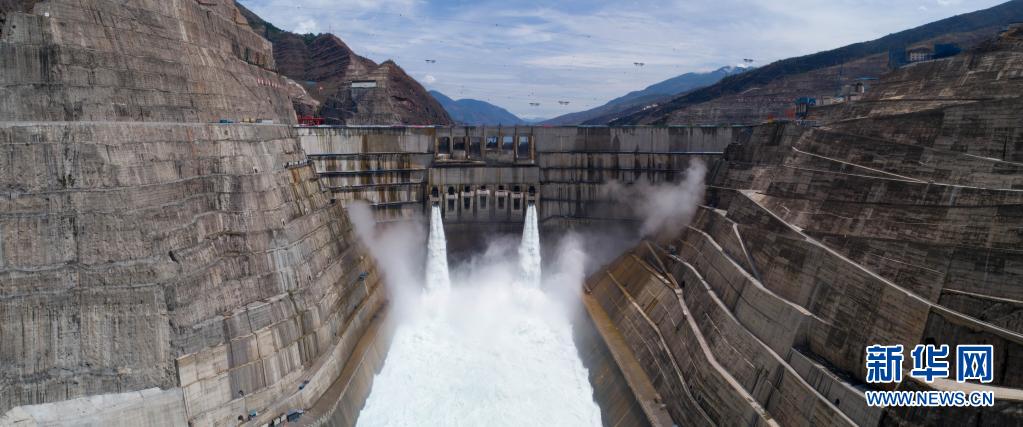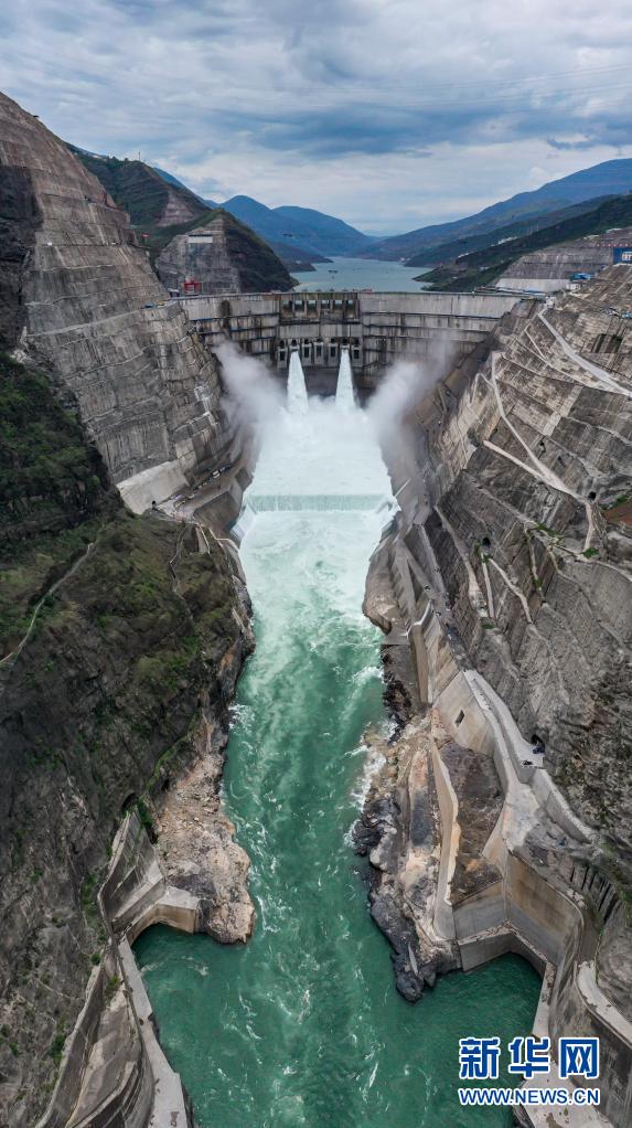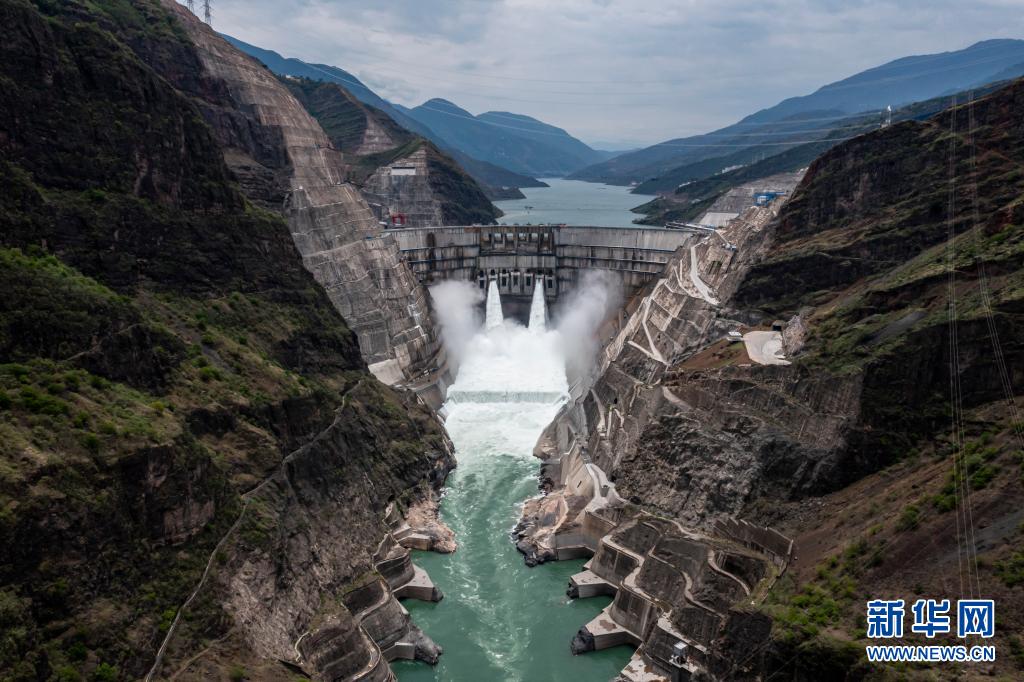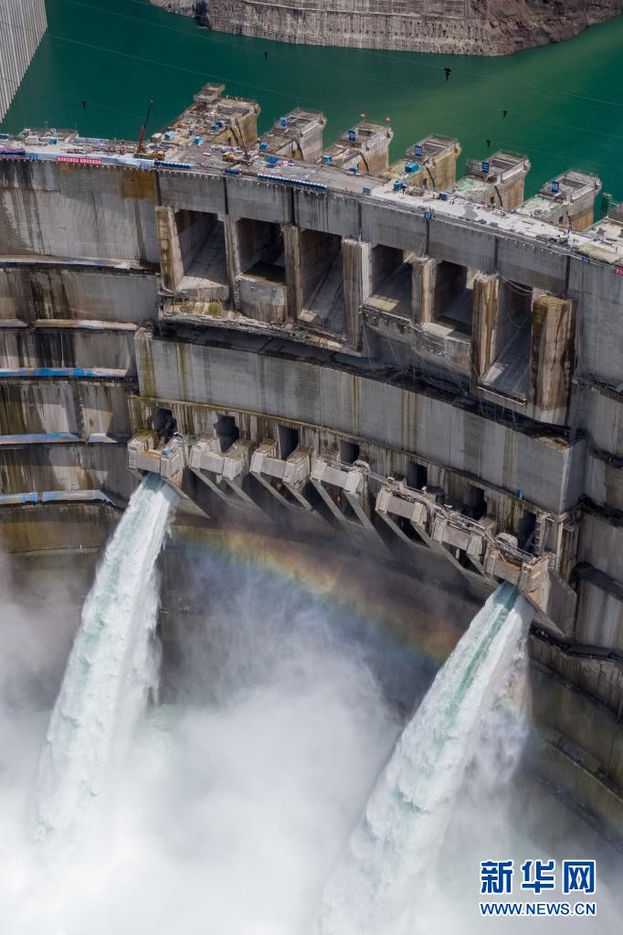 6月28日拍摄的正在发电运行的白鹤滩水电站。新华社记者 江文耀 摄