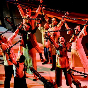 剧情最后一幕,革命者们回望观众,仿佛是穿越时空的叮嘱:“请忘了我们吧,擦干眼泪,忘了悲痛,向着光明。”