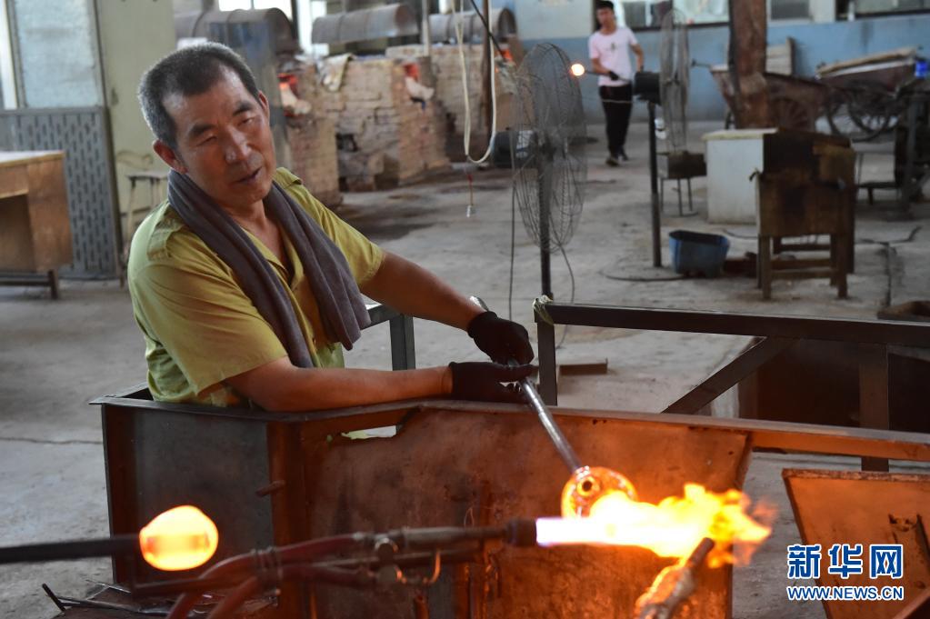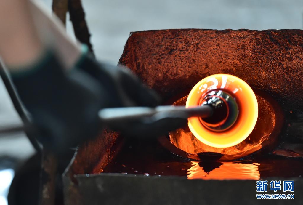 5月26日,山西宏艺玻璃器皿有限责任公司的工人在制作玻璃器皿。新华社记者 柴婷 摄