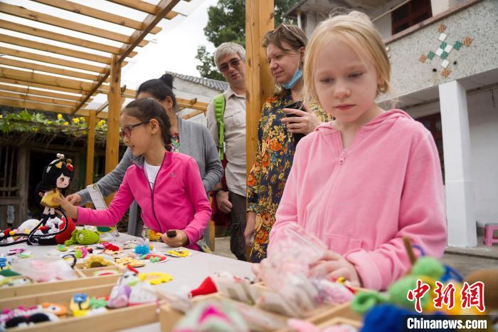游客在葛家村选购村民编织的钩编作品 徐铭怿 摄