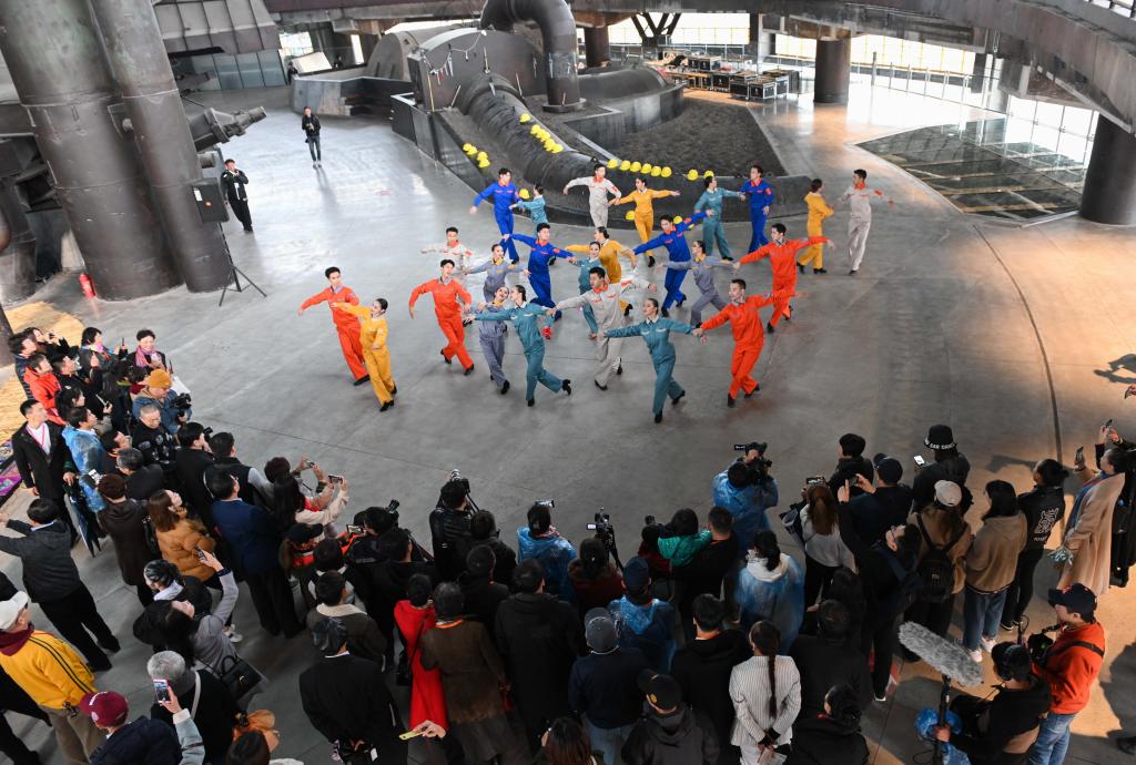 这是观众在首钢园区三高炉内观看舞蹈表演。 新华社记者陈晔华 摄