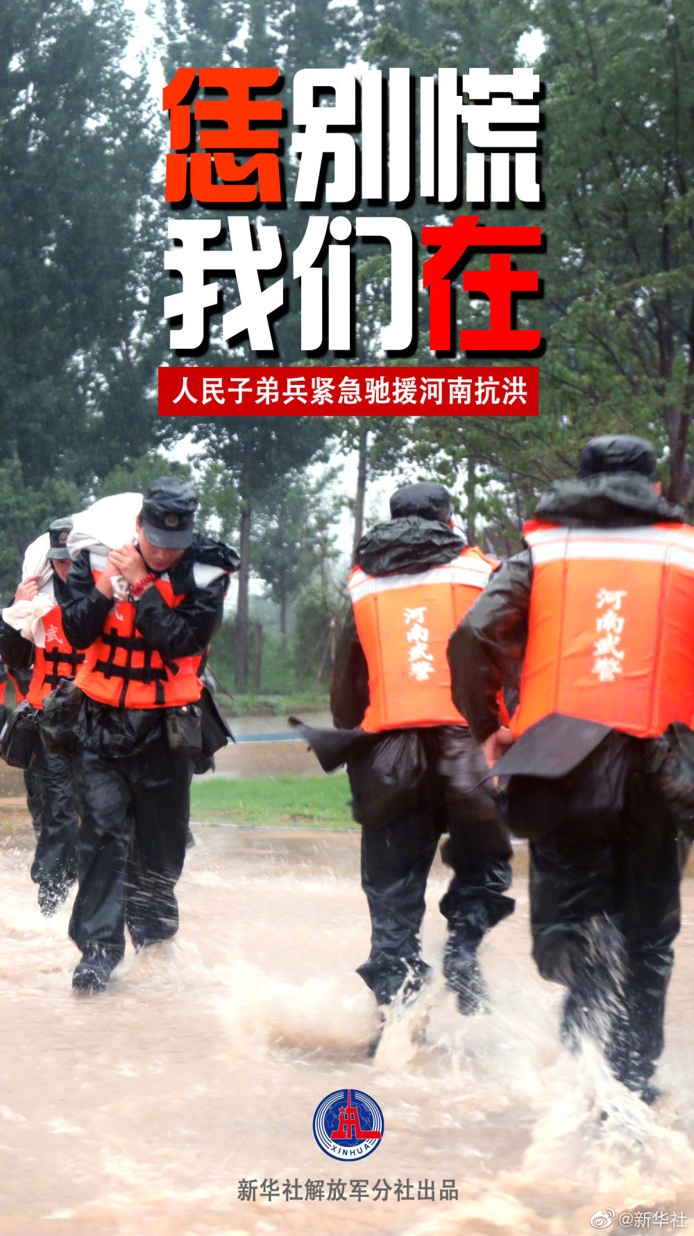 近日,河南多地持续遭遇强降雨,防汛形势十分严峻。解放军和武警部队闻“汛”而动,当地驻军数千名官兵迅疾展开抢险救援。(文字李国利,海报设计琚振华、蔡琳琳)