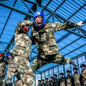 武警青海总队执勤支队执勤七中队官兵在训练馆训练(2月1日摄)。新华社发(杨浩 摄)