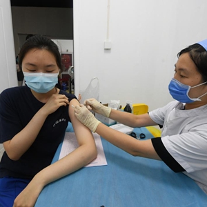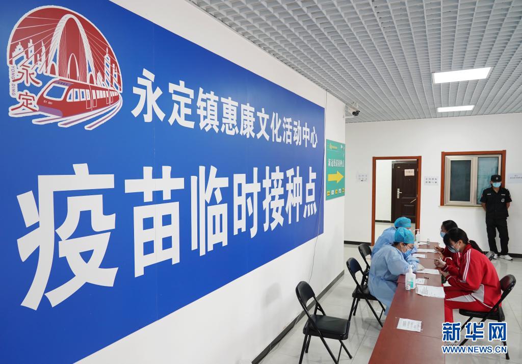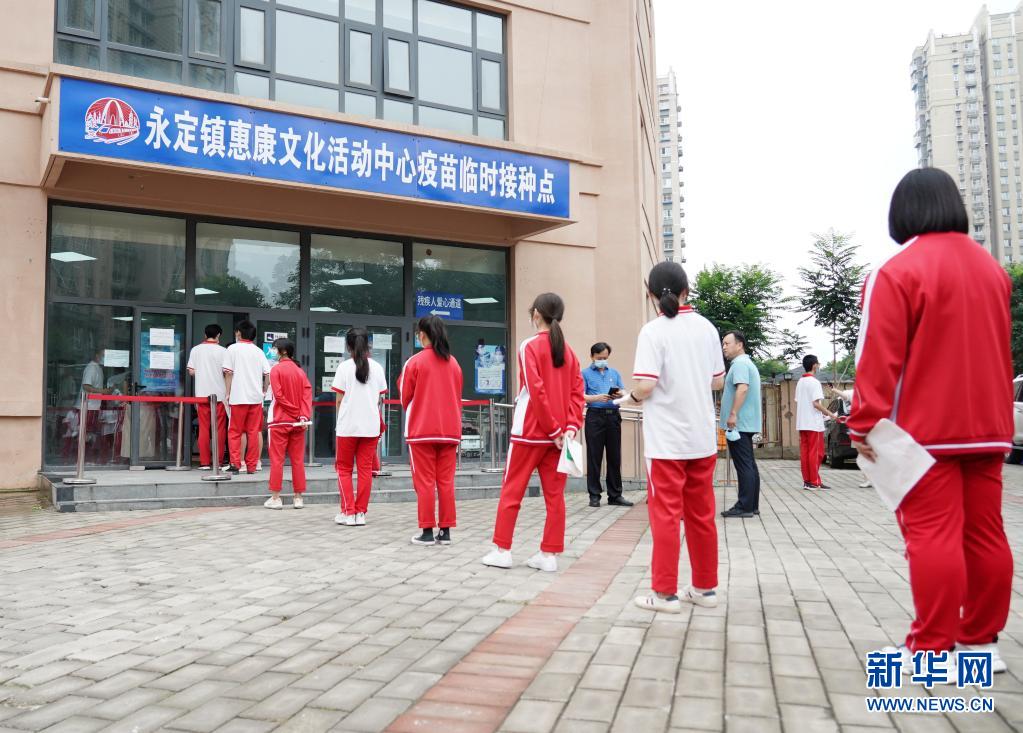 7月21日,医护人员为首都师范大学附属中学永定分校的学生接种新冠病毒疫苗。新华社记者 张晨霖 摄