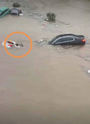 危急之下,我先把一名年龄稍大的女士先放在车顶上面,当时一回头又有女士在我身后求救,我赶忙游过去,帮我身后的两位女士拉住车门。